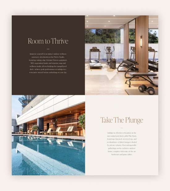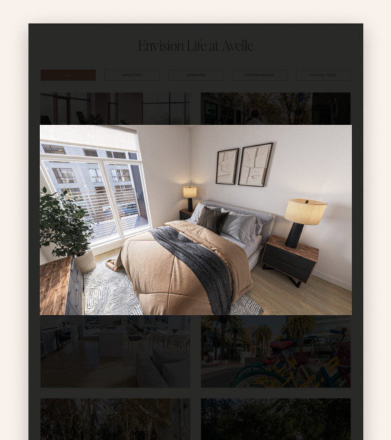 We selected elegant typefaces for Avelle’s website to enhance its luxurious aesthetic and ensure readability. The combination of sophisticated fonts adds a touch of refinement, reflecting the upscale nature of their apartments. This thoughtful typographic choice not only elevates the visual appeal but also aligns with Avelle’s brand identity, creating an inviting and memorable user experience.