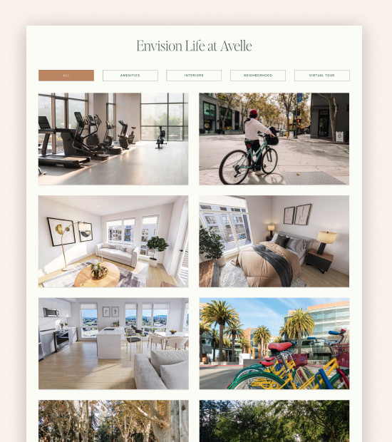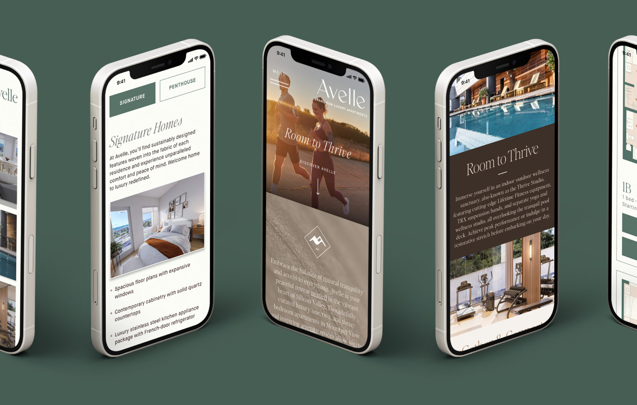 We designed Avelle’s website to reflect the luxurious and modern feel of their upscale apartments. By incorporating high-quality images, elegant typography, and a clean layout, we emphasized their resort-style amenities and prime Silicon Valley location. The site’s user-friendly navigation guides potential residents seamlessly through the offerings, with clear calls to action for scheduling tours or exploring floor plans. This design effectively communicates Avelle’s brand identity, making the digital experience as sophisticated as their living spaces.