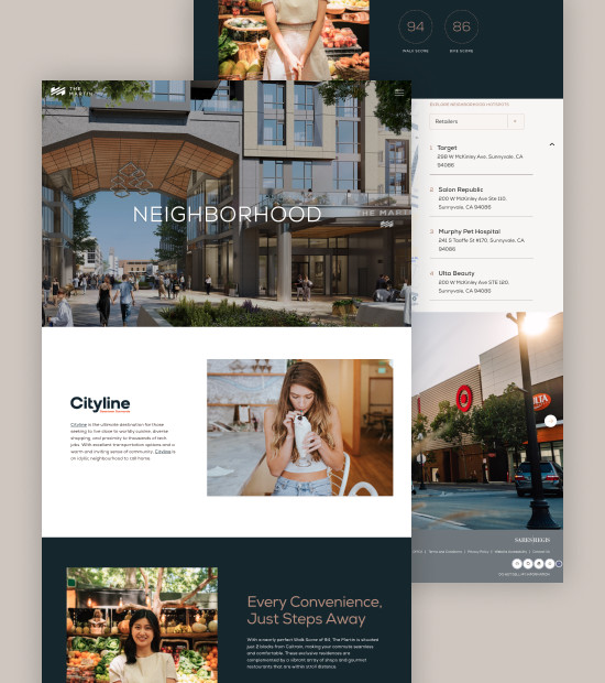 We incorporated intuitive navigation and high-quality visuals that highlighted the property’s premium aspects without sacrificing user experience. The design also needed to capture downtown Sunnyvale’s energy, so we used dynamic imagery to reflect the vibrant urban surroundings.